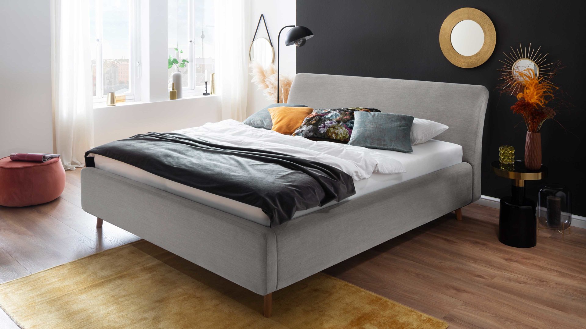 Das Highlight stellt das glatte, leicht gerundete Kopfteil dar. Dadurch erhält das Polsterbettgestell ein sanftes und besonders wohnliches Aussehen und passt zu verschiedensten Einrichtungsstilen.