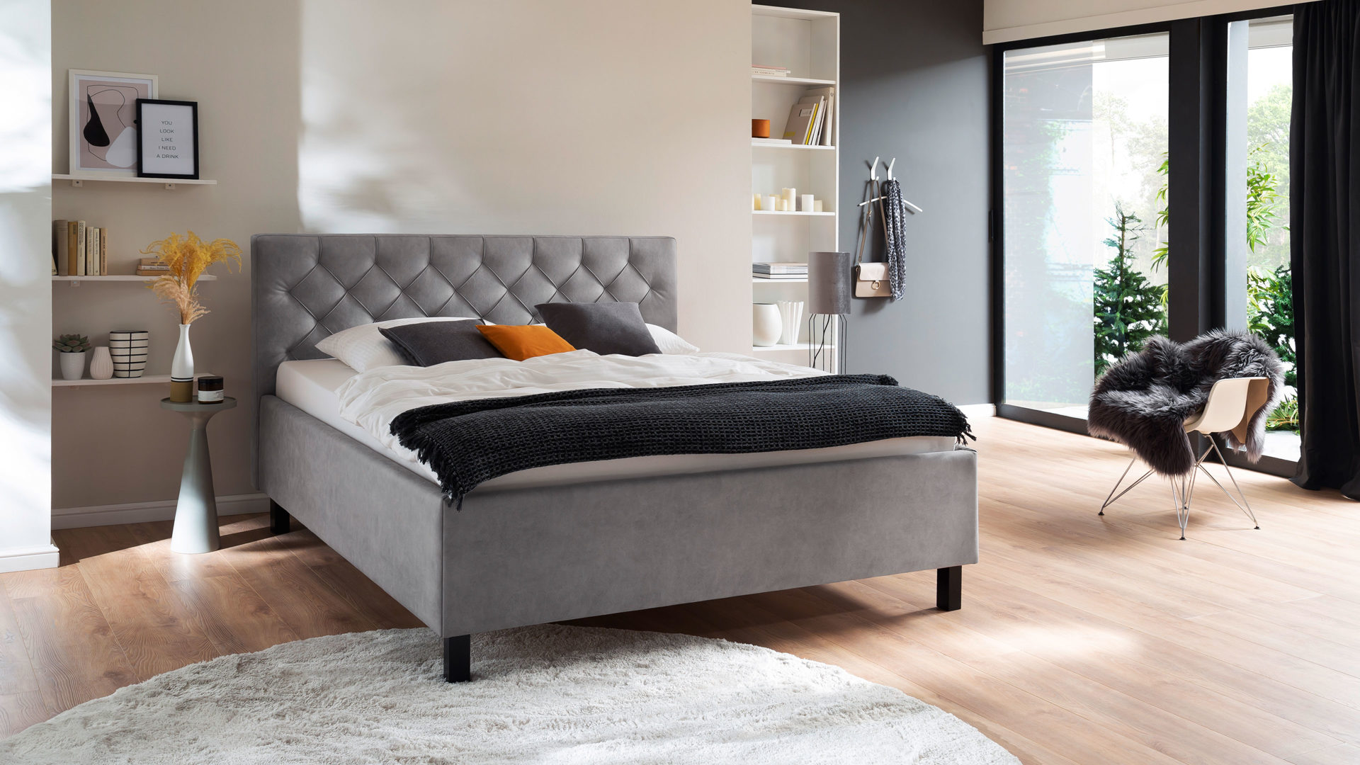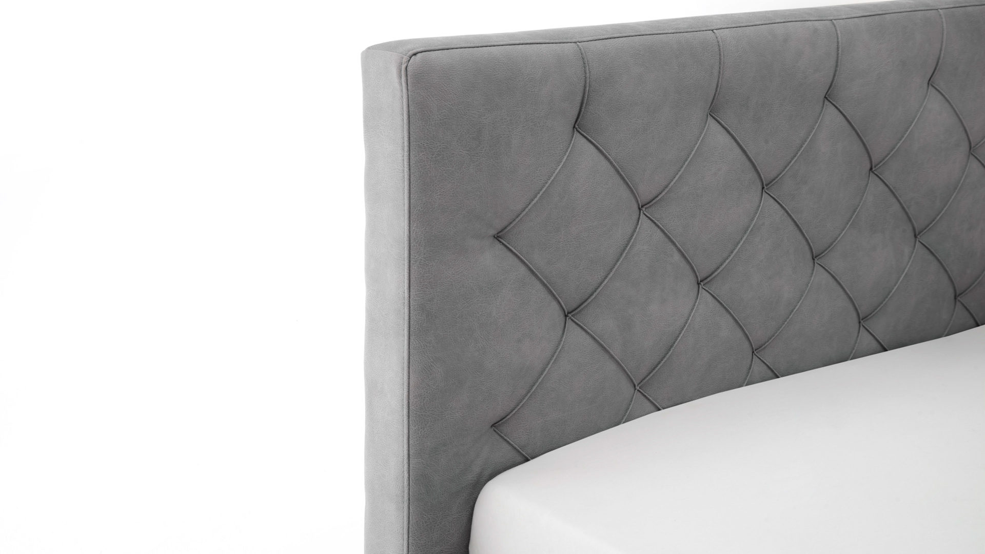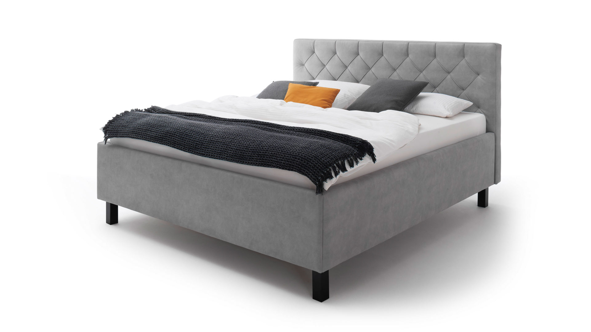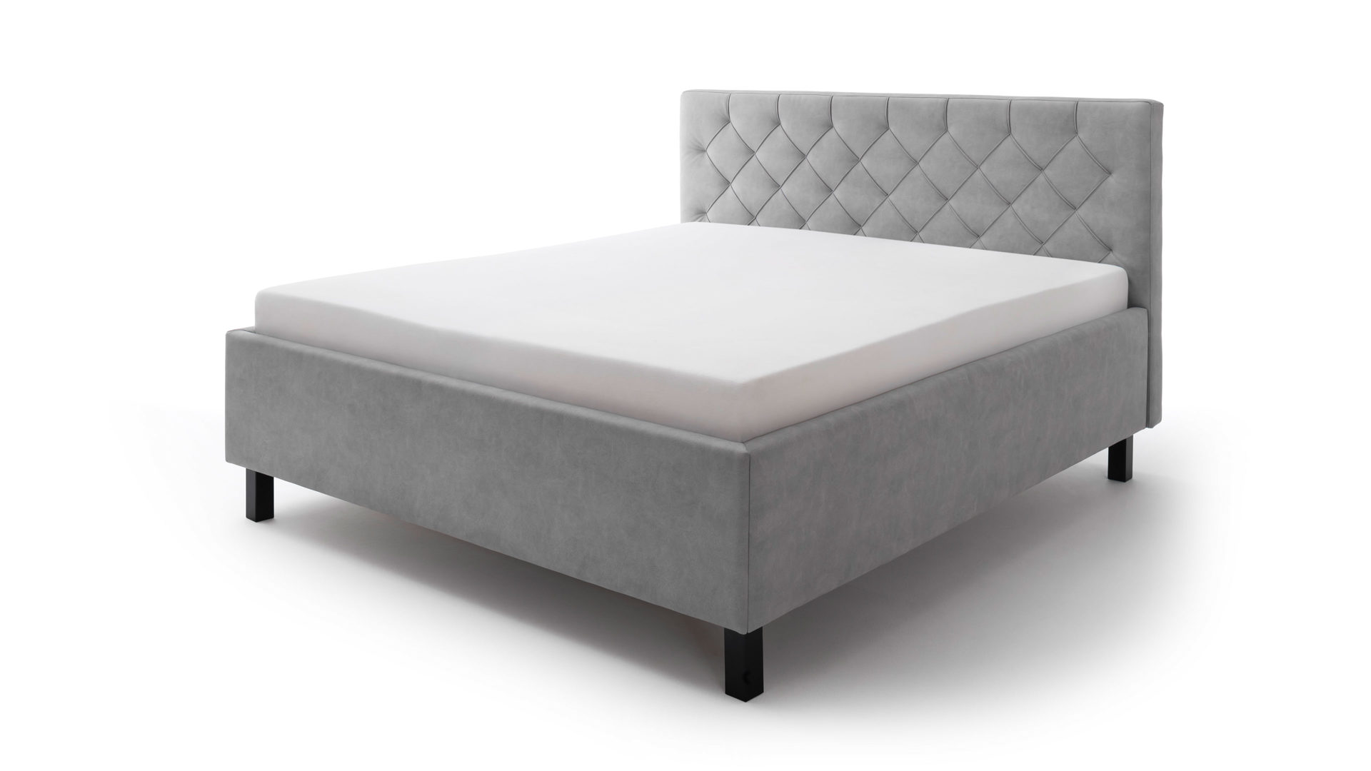Das Polsterbettgestell San Remo bringt einen zeitlosen Chic mit. Sein hellgrauer Mikrofaserbezug Bulus 32 trifft auf Holzfüße in dezentem Schwarz. Abgerundet wird das edle Design von dem gesteppten Kopfteil mit Rautenmuster. Es entsteht ein stilvoller Look voll frischer Eleganz.