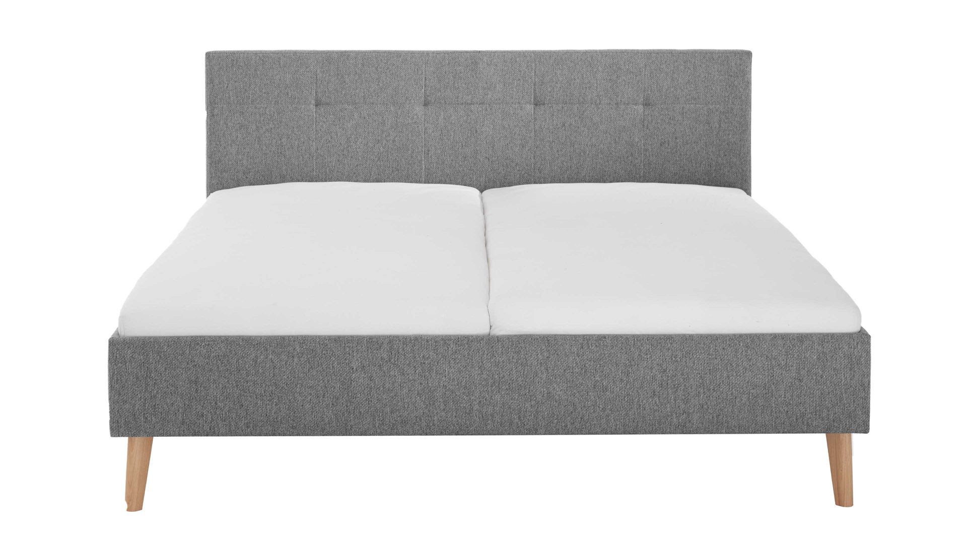 Das Polsterbettgestell Jazz ist gemütlich und stilvoll designt. Mit dem edlen grauen Stoffbezug und den eichefarbenen Holzfüßen strahlt es Eleganz mit einer Prise Natürlichkeit aus. Zu den Höhepunkten gehört das gesteppte Polsterkopfteil. Es verleiht dem Bett das gewisse optische Etwas und gibt Ihnen beim Lesen oder Fernsehen eine bequeme Anlehnmöglichkeit. Die Bettseiten sind glatt bezogen.