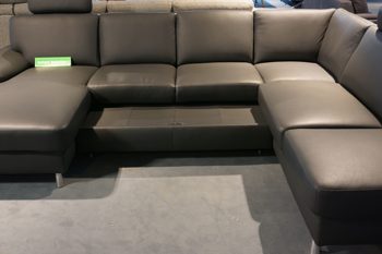 Die Wohnlandschaft in Leder Anthrazit mit einem Stellmaß von links nach rechts ist 1,68 x 3,05 x 2,35 m Rücken Echt und Fuss Metall gebürstet