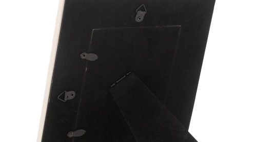 der Holzrahmen ist auf der Vorderseite mit beigem, auf der Rückseite mit schwarzem Velours bezogen