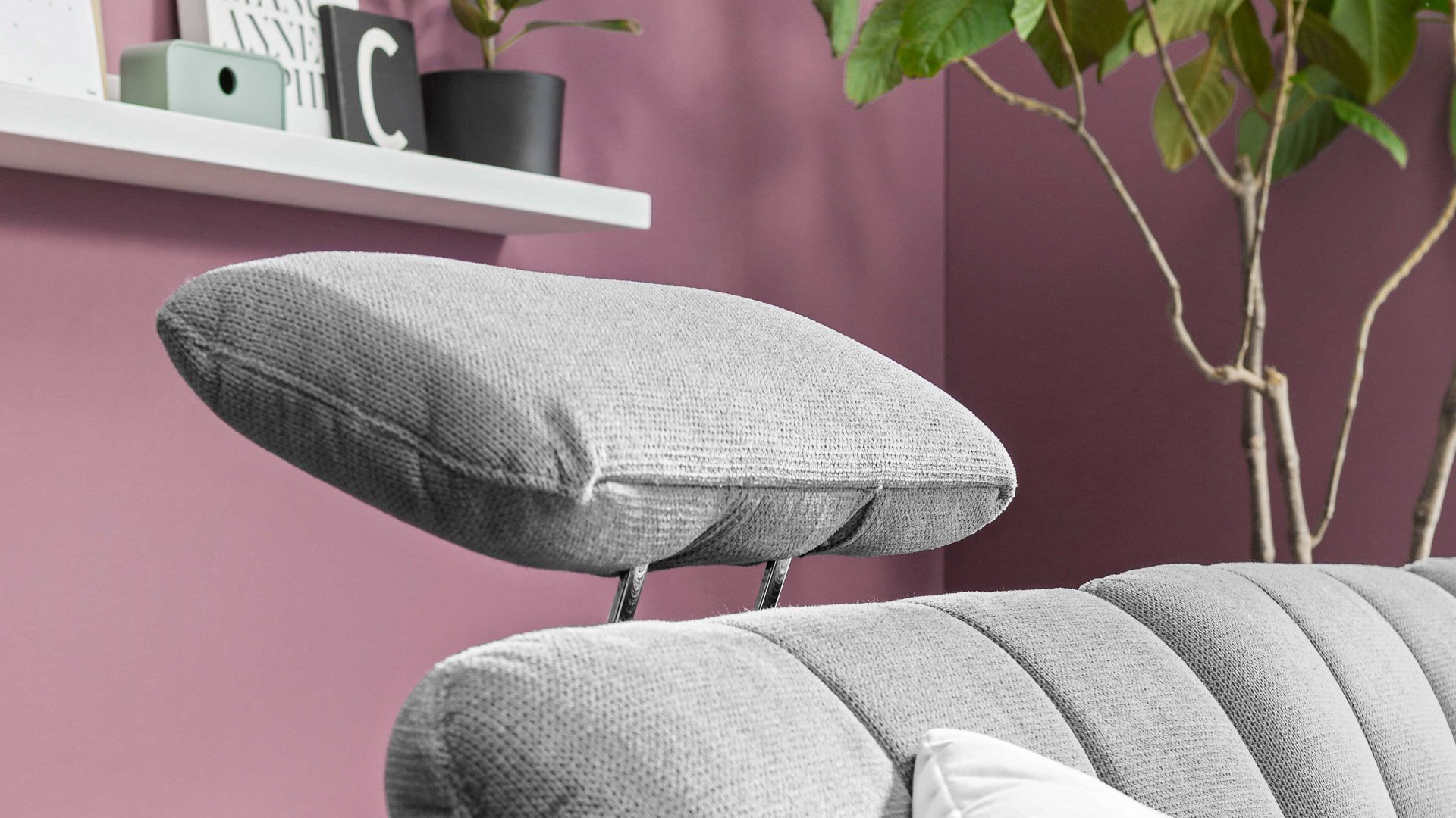 Die Abbildung zeigt ein Wohnbeispiel, welches auch Dekoration sowie separat erhältliches Zubehör enthält. Im Lieferumfang enthalten ist die Kopfstütze CKS.