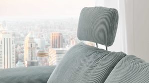 die Kopfstütze wird in die Kopfstützvorrichtung an der Rückenlehne des Sofas eingesteckt und lässt sich dann in der Höhe und in der Neigung manuell verstellen