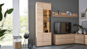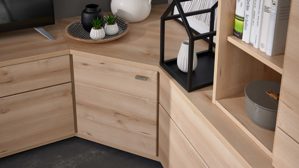 Die Eck-Wohnlösung der Interliving Wohnzimmer Serie 2110 ist individuell planbar: Du kannst zwischen zwei Front- und Griffvarianten wählen und die Wohnwand optional mit LED-Beleuchtung oder einer geschroppten Rückwand ausstatten. Produziert in Deutschland, steht diese Serie für geprüfte Qualität, Nachhaltigkeit und Design made with care.