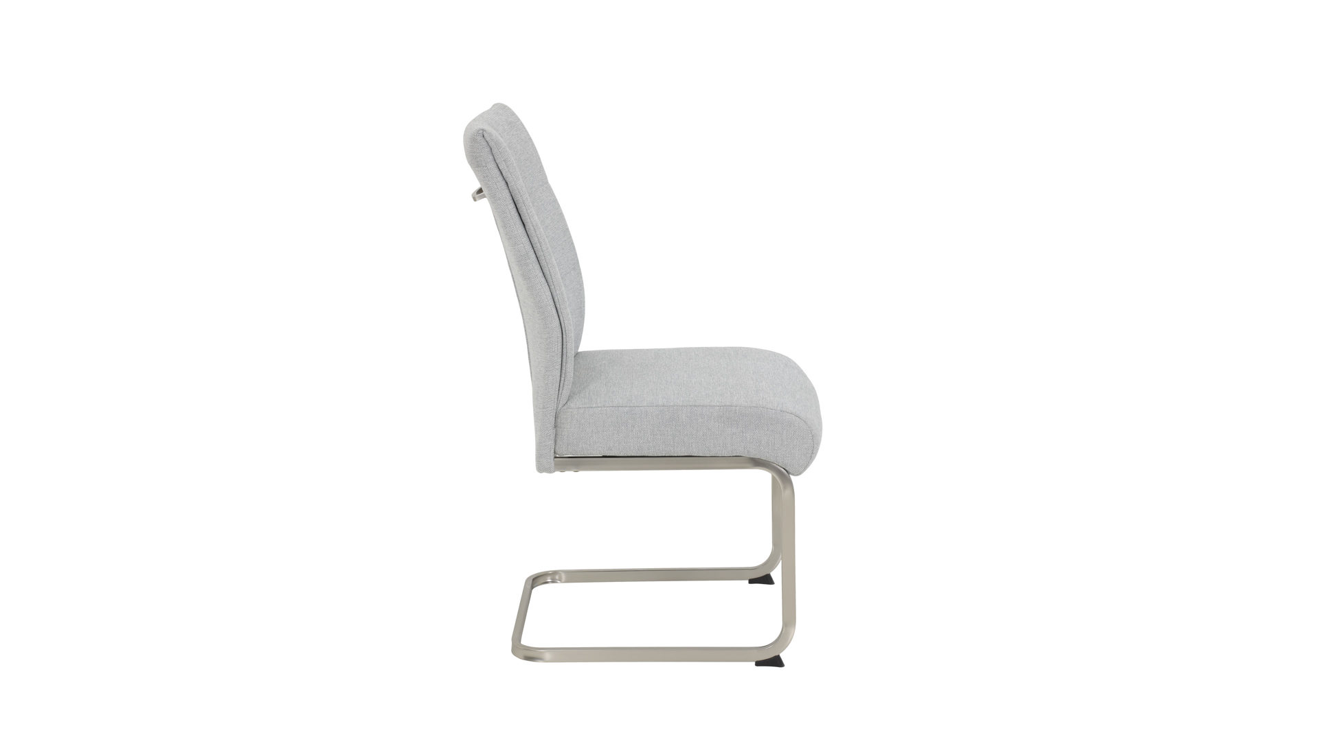 Der Schwingstuhl Ines S zeichnet sich durch sein edles Design, den hohen Komfort und die exzellente Verarbeitungsqualität aus. Er kombiniert grauen Microfaser-Webstoff mit einem gebürsteten Hochkant-Metallgestell in gelungener Edelstahloptik. Die Materialien und Farben sorgen für eine moderne und elegante Ausstrahlung.