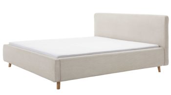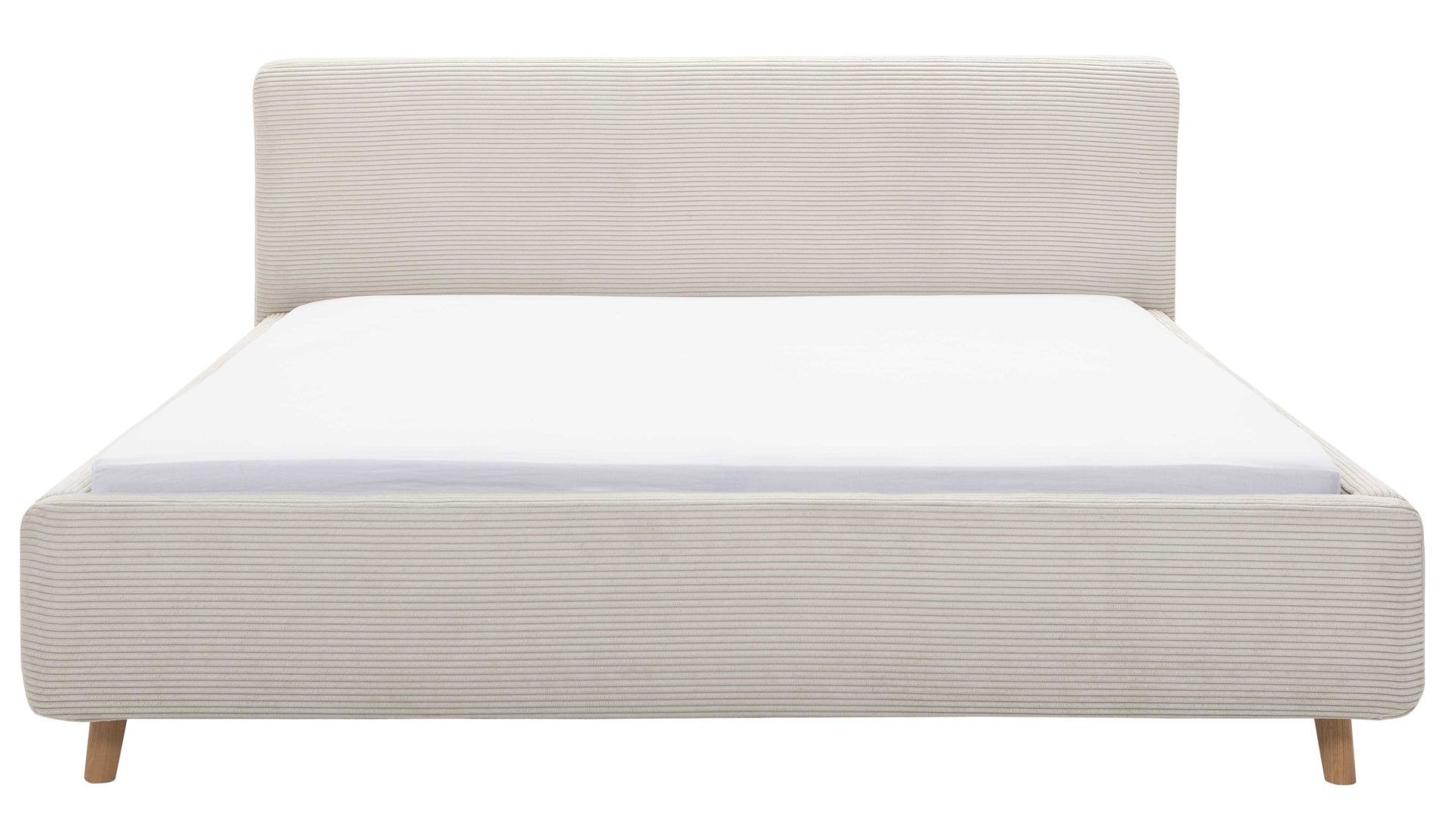Mit den eichefarbenen Holzfüßen und dem beigen Breitcordbezug bringt das Polsterbettgestell Mattis maritimes Flair in Ihr Schlafzimmer.