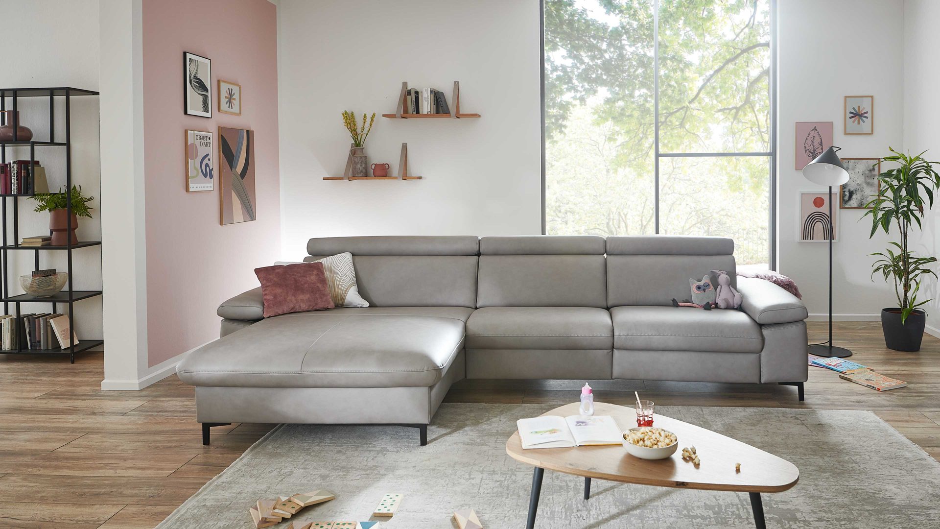 • Die Abbildung zeigt ein Wohnbeispiel, welches auch Dekoration sowie separat erhältliches Zubehör enthält. Im Lieferumfang enthalten ist eine Liegefunktion MoLi.