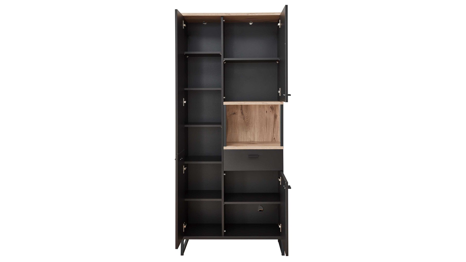 drei Türen, eine Schulade und ein offenes Fach