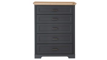 Die mattnickelfarbigen Knopfgriffe Nr. 90985 ergänzen das Design des Kommodenschranks perfekt und sorgen für eine harmonische Gesamtoptik. Mit den fünf Schubladen, die über Teilauszug und Softclose-Funktion verfügen, haben Sie genügend Stauraum für Ihre Kleidung und Accessoires. Der Selbsteinzug ermöglicht ein bequemes Öffnen und Schließen der Schubladen.