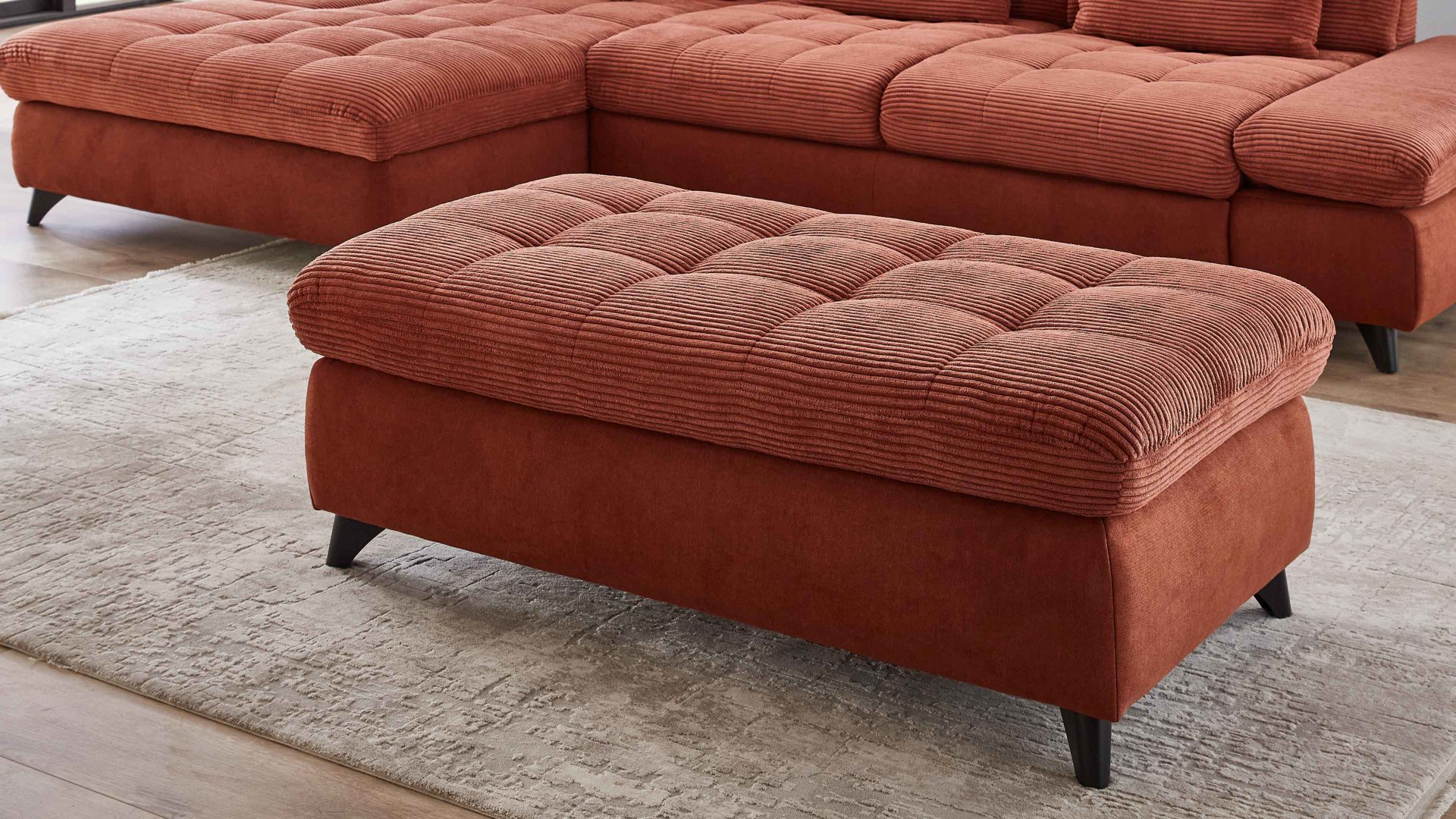 kupferfarbener Breitcordbezug, kombiniert mit kupferfarbenem Flachgewebebezug