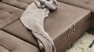 die Liegefläche der Bettfunktion wird statt mit hochwertigem Matratzendrell im Originalstoff des Sofas bezogen