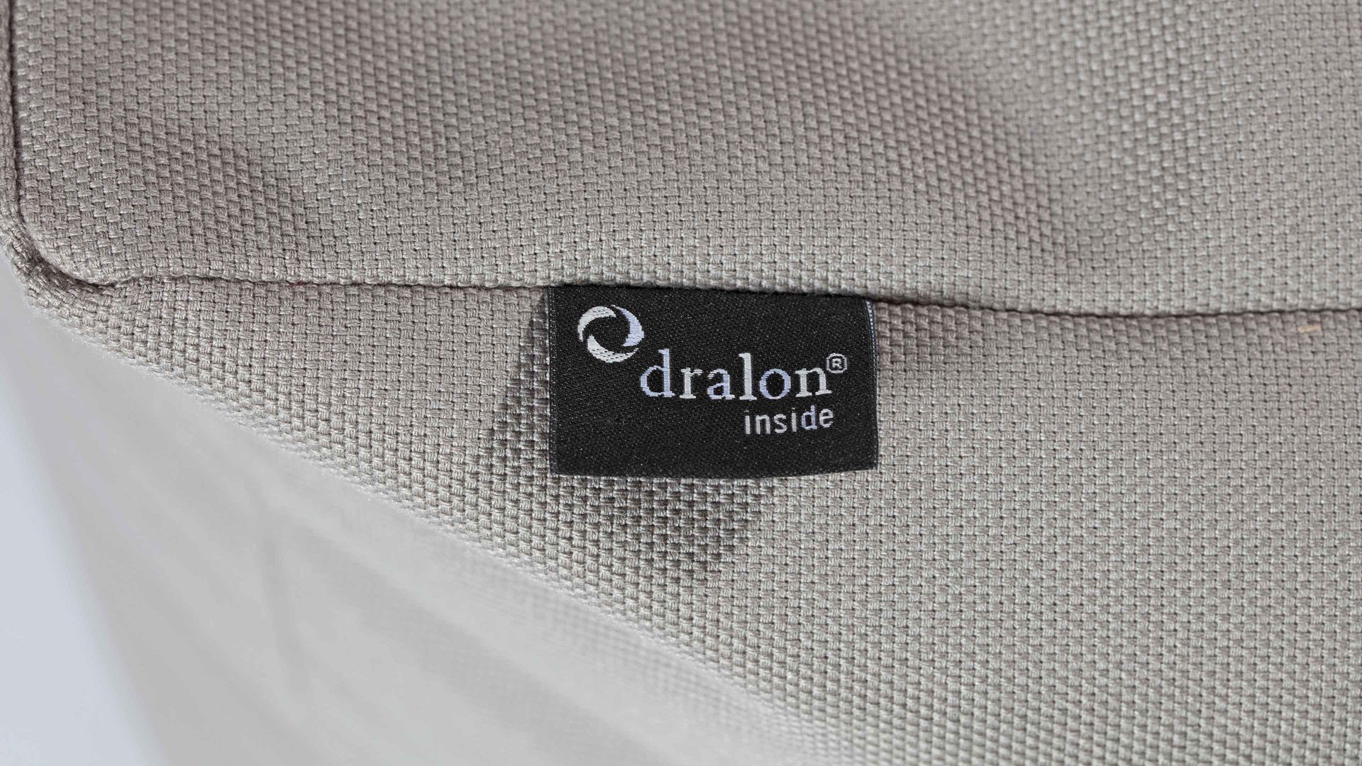 Da der Stoff zwar extrem robust, aber auch sehr anschmiegsam ist, ist er natürlich auch für den Innenbereich geeignet. Für die Outdoor-Kollektion outside werden hochwertige und in Deutschland gefertigte dralon® Acrylfasern verwendet. Dieses Material, das unter anderem zur Herstellung von Sonnenschirmen und Segeln verwendet wird, überzeugt durch brillante Farben, hohe Pflegeleichtigkeit und Strapazierfähigkeit in der freien Natur, auf der Veranda oder dem Balkon.