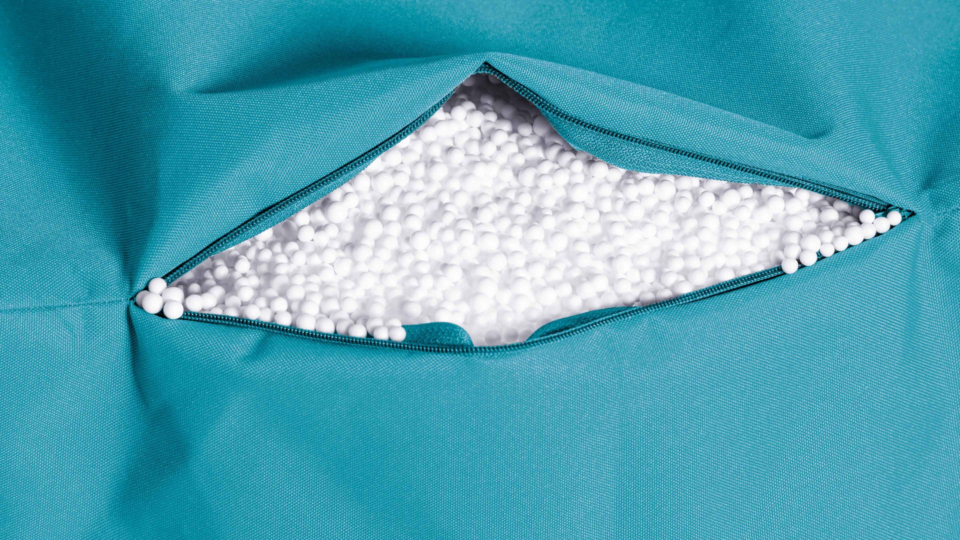 Der petrolfarbene Sitzsack-Hocker mit anthrazitfarbenen Seiten leistet Ihnen in jedem Wohnraum und auch als Terrassenmöbel oder Balkonmöbel gute Dienste.