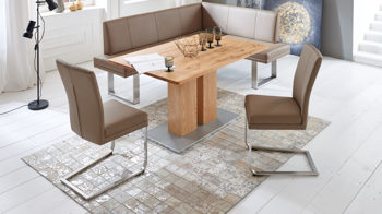 Apropos Sitzen: Der hochwertige Komfort-Kaltschaumsitz mit dem Komfortschwung, in dem qualitativ erstklassige Schäume zu einer top funktionierenden Einheit verarbeitet sind, ist zum einen angenehm weich und zum anderen sehr fest und stützend. Damit schafft er die wesentlichsten Voraussetzungen für entspanntes Essen und gemütlich-geselliges Zusammensitzen mit Familie und Freunden.