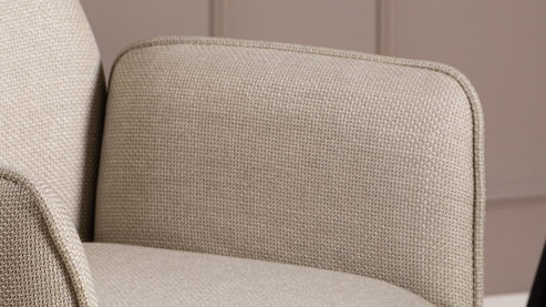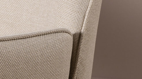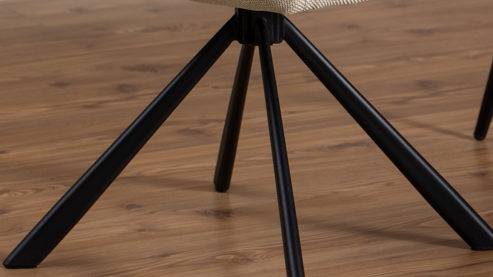 beiger Webstoffbezug und mattschwarz rau pulverbeschichtetes Metall