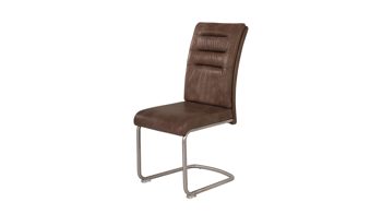 Das komfortable Sitzmöbel in Braun besticht im zeitlosen sowie geradlinigen Design und ist die perfekte Sitzgelegenheit für Ihren einladenden Essbereich. Sowohl in der Küche als auch im Esszimmer sitzen Sie und Ihre Gäste äußerst bequem auf dem Freischwinger, der mit pflegeleichtem, braunem Kunstleder und einem stabilen, gebürsteten Flachrohrgestell aus Edelstahl ein Schwingstuhl für die ganze Familie ist. Dank der praktischen Griffmulde in der Rückenlehne versetzen Sie den Polsterstuhl einfach dorthin, wo Sie ihn benötigen.