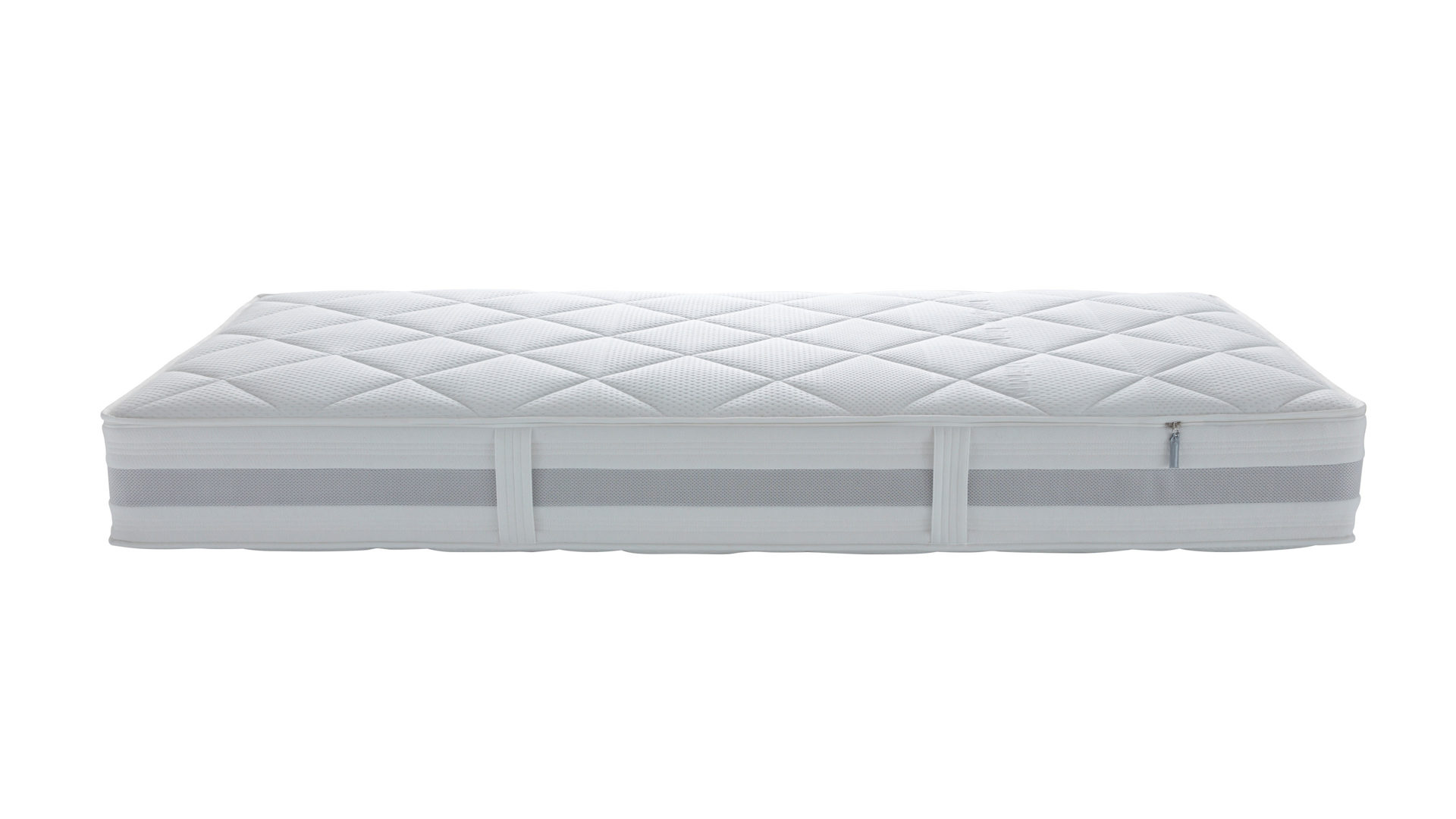 Im Kern arbeitet ein 7-Zonen-AQUAPUR®-Taschenfederkernsystem mit rund 1.000 einzeln verpackten Federn (bezogen auf ca. 100 x 200 cm). Diese sorgen für eine besonders präzise Körperanpassung und gezielte Druckentlastung – von der Schulter bis zum Becken. Ergänzt wird das System durch eine offenporige AQUAPUR®-Schaumplatte unter dem Federkern, die die Luftzirkulation fördert und für ein frisches, atmungsaktives Schlafklima sorgt.