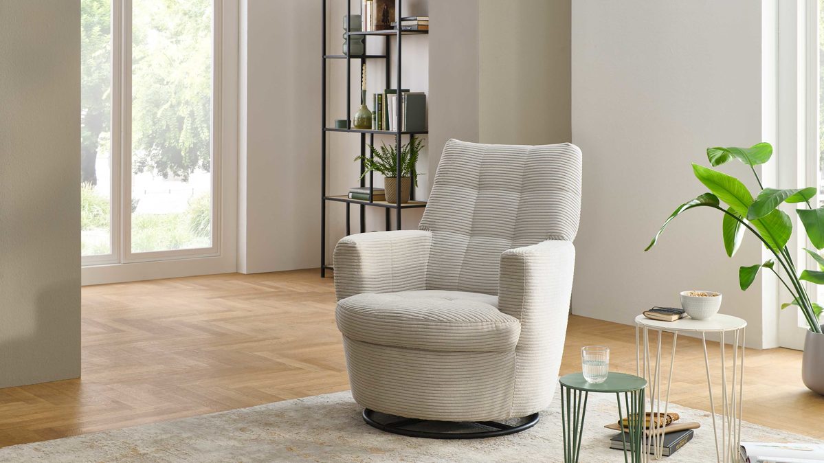 Die softe Kaltschaumpolsterung sorgt für erstklassigen Sitzkomfort. Funktional begeistert der TV-Sessel mit einem drehbaren Fuß und einer Wippfunktion. Er ist bis maximal 120 kg belastbar und misst ca. 80 x 93 x 91 cm (BxHxT). Die Sitzhöhe beläuft sich auf ca. 43 cm, während die Sitztiefe ca. 56 cm beträgt.