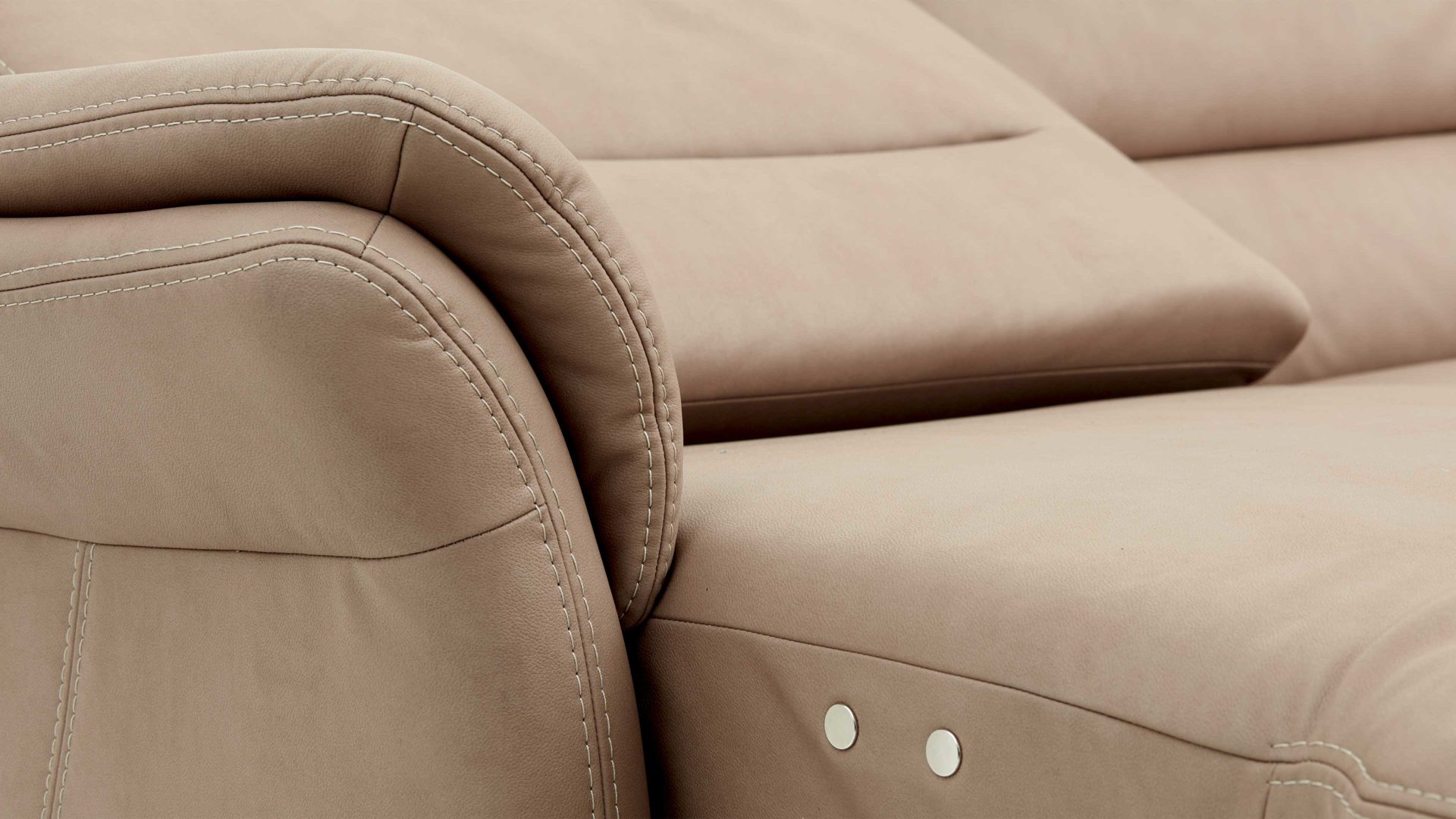 Über zwei seitlich links im Sitz angebrachte Touchbuttons lässt sich das Sofaelement stufenlos bis zur Liegeposition verstellen. Dadurch können Sie beim Lesen, Fernsehen oder puren Entspannen eine besonders komfortable Haltung einnehmen und einfach relaxen.