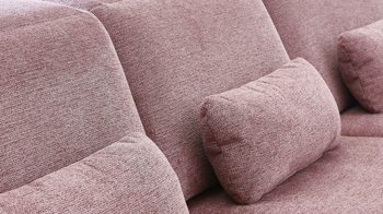 Zu den Highlights des Polsterprogramms gehören die grundsätzlich im Originalstoff bezogenen Rückseiten, die bei allen Elementen enthaltene Kopfpolsterverstellung sowie die für Staubsaugerroboter ideale Bodenfreiheit. Die Serie ist Made in Europe und mit dem Goldenen M ausgezeichnet.