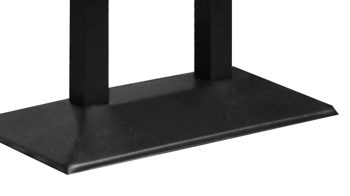 die pflegeleichte Tischplatte wird auf ein stabiles Metallgestell mit rechteckigem Fuß montiert