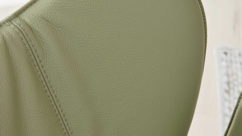 Durch die schmalen, gepolsterten Armlehnen sitzt du angenehm unterstützt, ohne dass der Stuhl zu viel Raum einnimmt. Die dezente Steppnaht in der Rückenlehne setzt dabei einen feinen, eleganten Akzent.