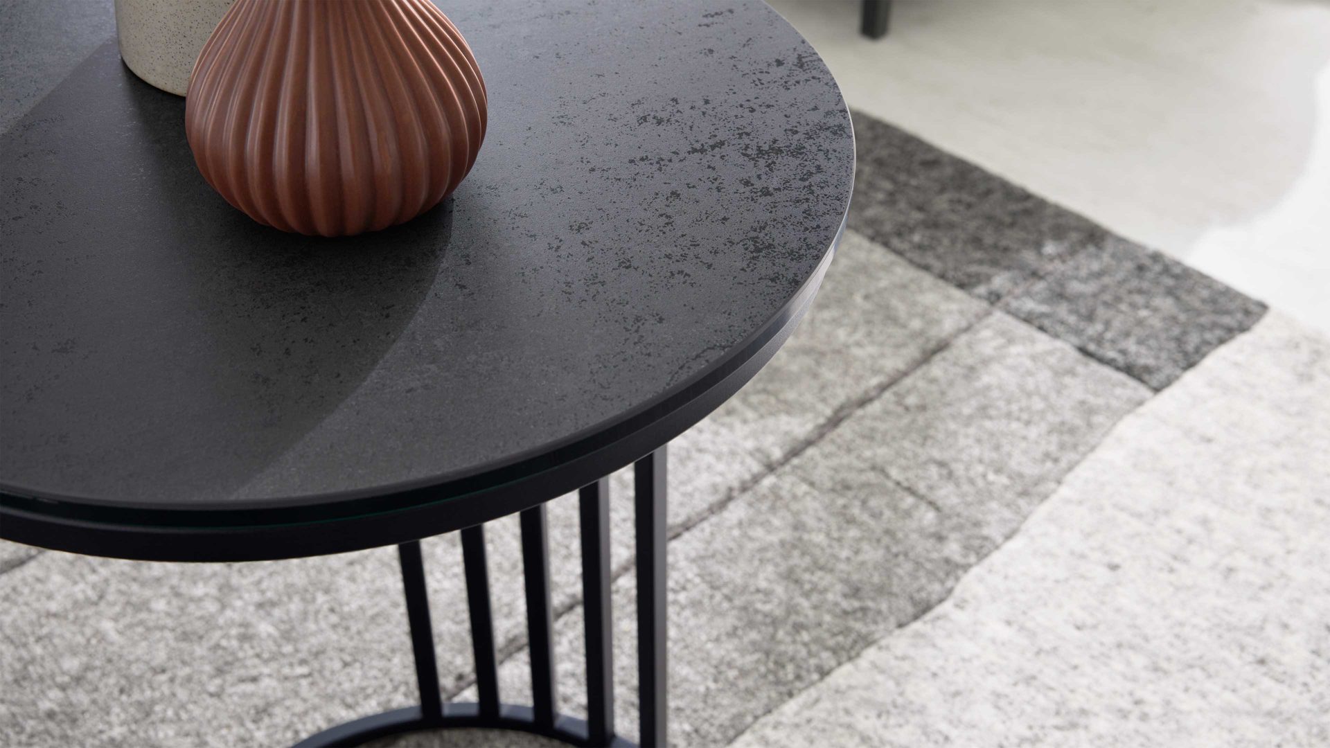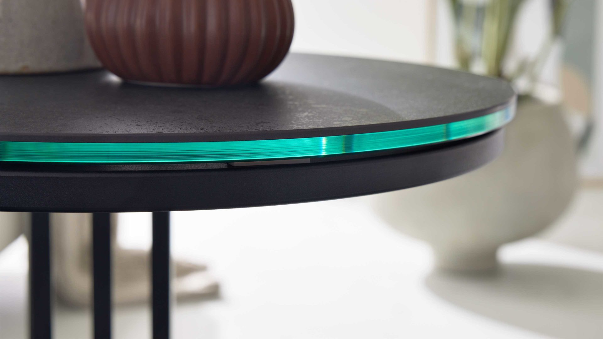 Der Beistelltisch aus der Couchtisch Serie 6220 begeistert mit seinem markanten Design und hochwertigen Materialien. Die titanfarbene Keramik-Tischplatte in Kombination mit dem mattschwarz lackierten Stahlgestell verleiht dem Tisch eine moderne, elegante Ausstrahlung – perfekt für stilbewusste Wohnräume.