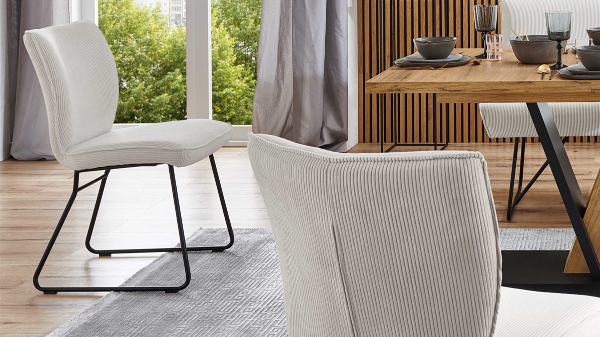 dazu passend sind eine Eckbank, weitere Stuhlvarianten und in drei Cordfarben erhältlich