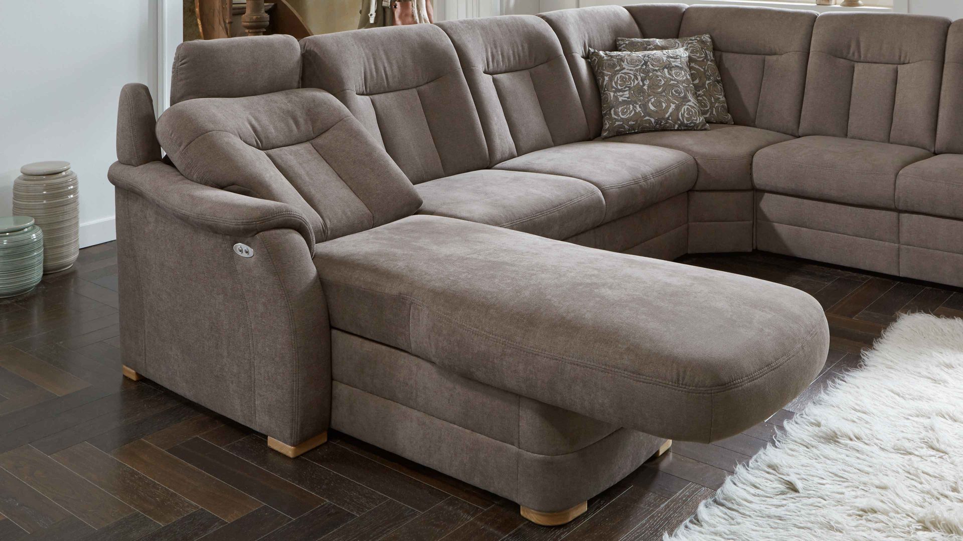Unter anderem sind fünf Fußvarianten in Holz und Metall und verschiedenen Farben erhältlich. Was die Polsterung betrifft, wählen Sie zwischen Superbonnellfederkern und - gegen Aufpreis - Boxspring. Optional können Sie manuelle oder motorische Funktionen ergänzen.