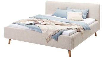 beiger Breitcord Poso 100 & Holzfüße - Liegefläche ca. 180 x 200 cm