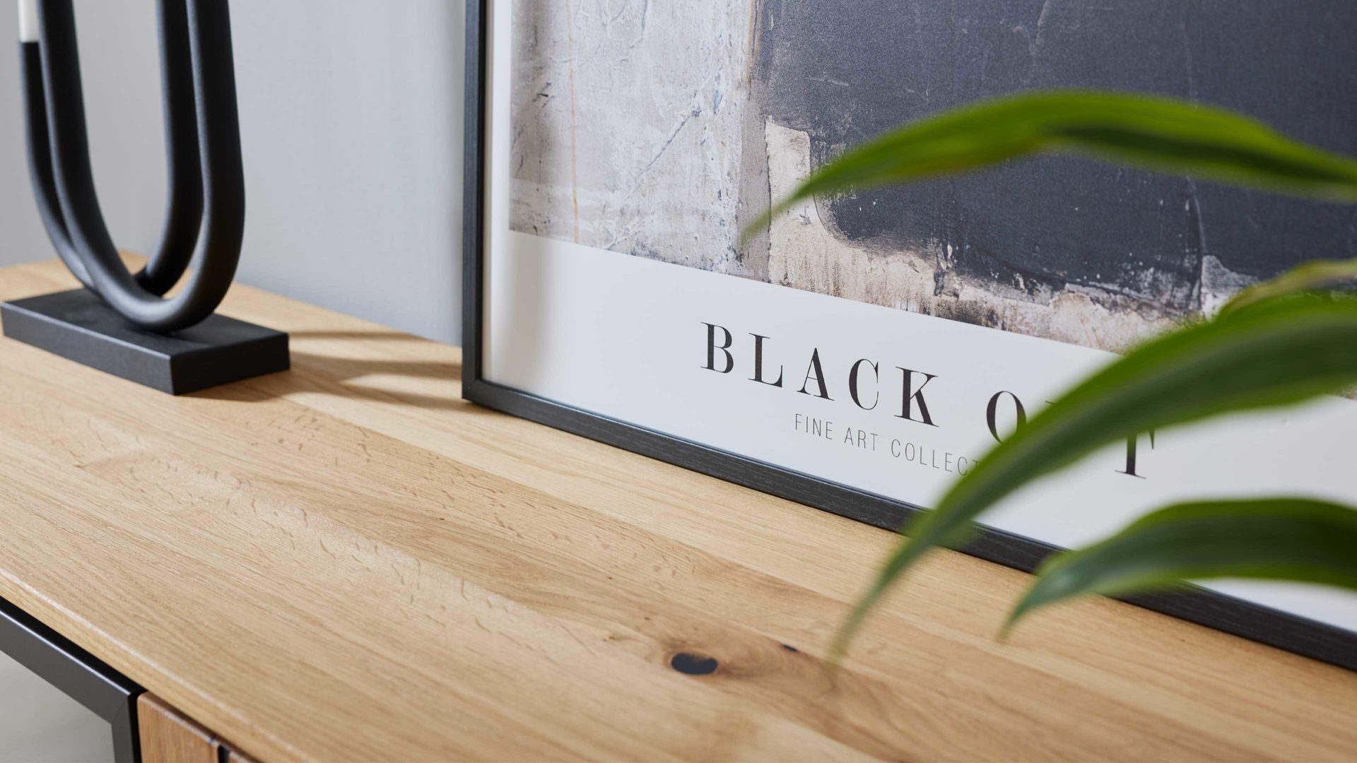| Farbhinweis: | Quarzgrau Klarglas Charakter-Eiche Mattschwarz | |