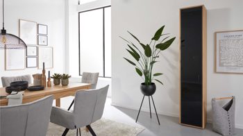 Dank der Softclose-Funktion schließt die Tür sanft und geräuschlos – für höchsten Bedienkomfort im Alltag. Optional lässt sich die Vitrine mit einer LED-Beleuchtung ergänzen, die gezielte Lichtakzente setzt und ein stimmungsvolles, wohnliches Ambiente schafft.