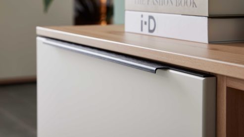 Interliving Wohnzimmer Serie 2032 – dein neues Lowboard in Sandbeige und Balkenbuche