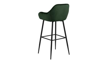 Dabei harmoniert der Tresenstuhl in seiner sanften Formensprache mit zahlreichen Einrichtungsstilen. Moderne Geradlinigkeit ergänzt er ebenso stimmig wie den beliebten Vintage-Trend. Auch farblich erlaubt der Hocker angenehme Freiheit beim Kombinieren: Dafür sorgt der waldgrüne Bezug Vic 68AC aus Samt, der die gesamte Sitzschale inklusive der bequemen Armlehnen weich umhüllt. Die rau pulverbeschichteten Metallfüße fließen in mattem Schwarz stimmig in das Gesamtbild ein.