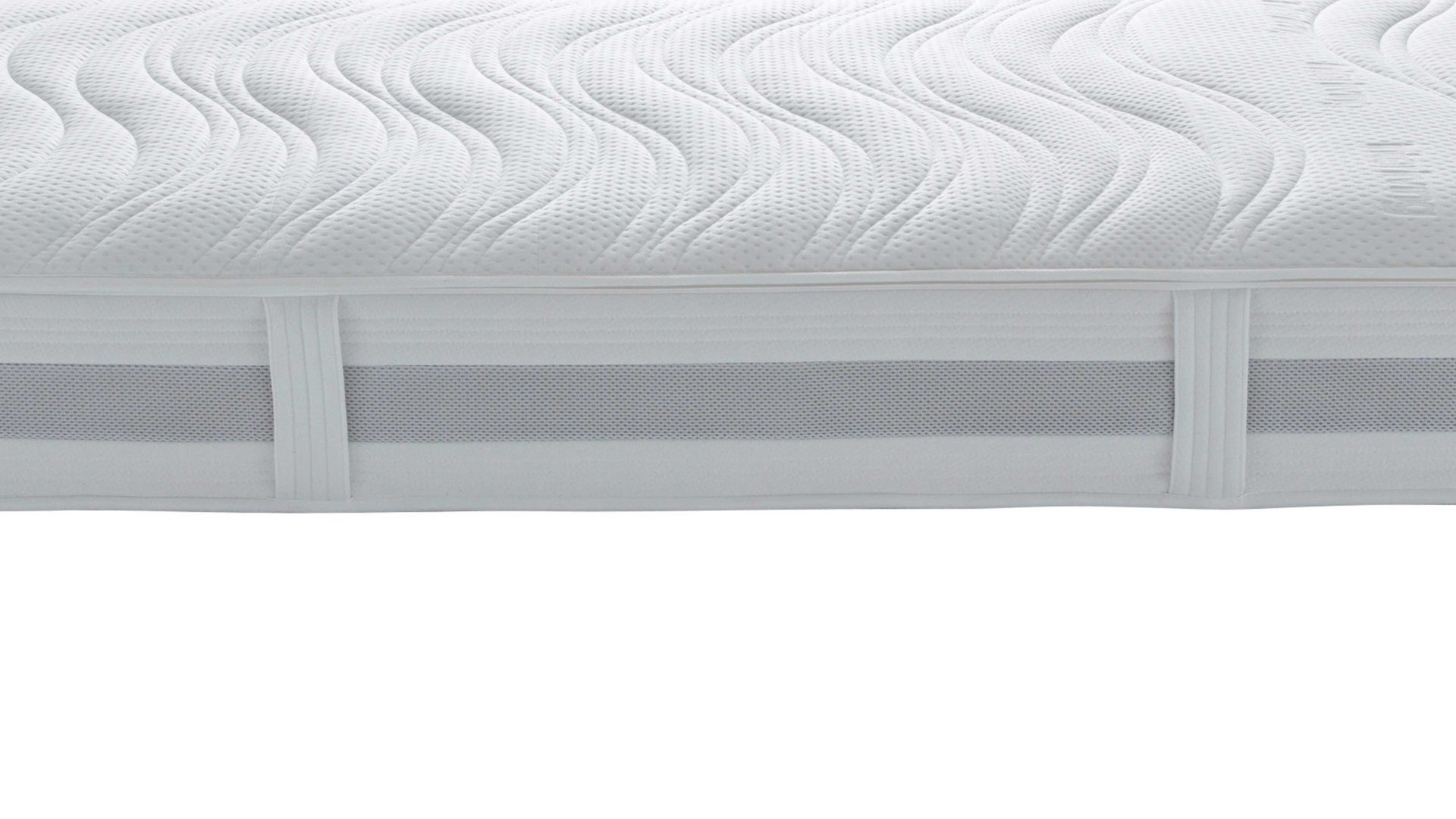 Die Sitzkantenstabilisierung mit verstärktem Randbereich sorgt für einfaches Aufstehen und eine dauerhaft formstabile Liegefläche. Dank der robusten Konstruktion eignet sich die Matratze sowohl für Motorrahmen als auch für Boxspringbetten. Praktische Wendegriffe erleichtern das Handling und Drehen im Alltag.