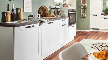 Die Highlights der individuell planbaren Küche sind der hochgebaute Backofen und die zahlreichen Auszüge mit extra viel Stauraum. Optional können Sie eine Armatur für die Einbauspüle und eine Geschirrspülmaschine für eine bequemere Geschirrreinigung ergänzen. Die hochwertige Einbauküche ist Made in Germany.