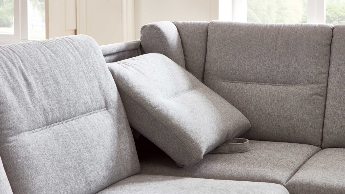 die Rückenlehne lässt sich durch leichtes Anheben und nach vorn ziehen in der Neigung verstellen