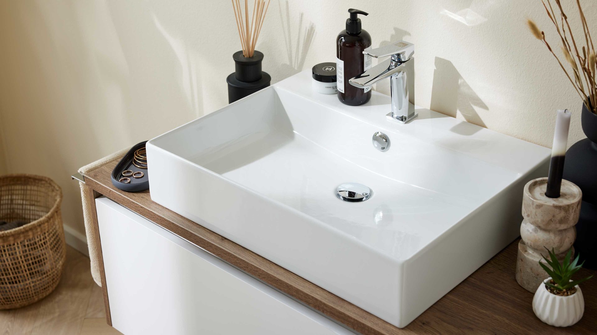 Das Basis-Set vereint Design und Funktion auf besonders harmonische Weise. Der Waschtischunterschrank (Typ 67337) bietet mit seinem geräumigen Auszug und der Rückwand mit Siphon-Ausschnitt praktischen Stauraum für deine täglichen Badutensilien. Er wird inklusive Abschlusswange (Typ 16786) geliefert. Mit Maßen von ca. 90 x 36 x 46 cm (B/LxHxT) fügt er sich optimal in unterschiedlichste Badgrößen ein. Glas-Seitenverblendungen sind auf Wunsch gegen Mehrpreis erhältlich.
