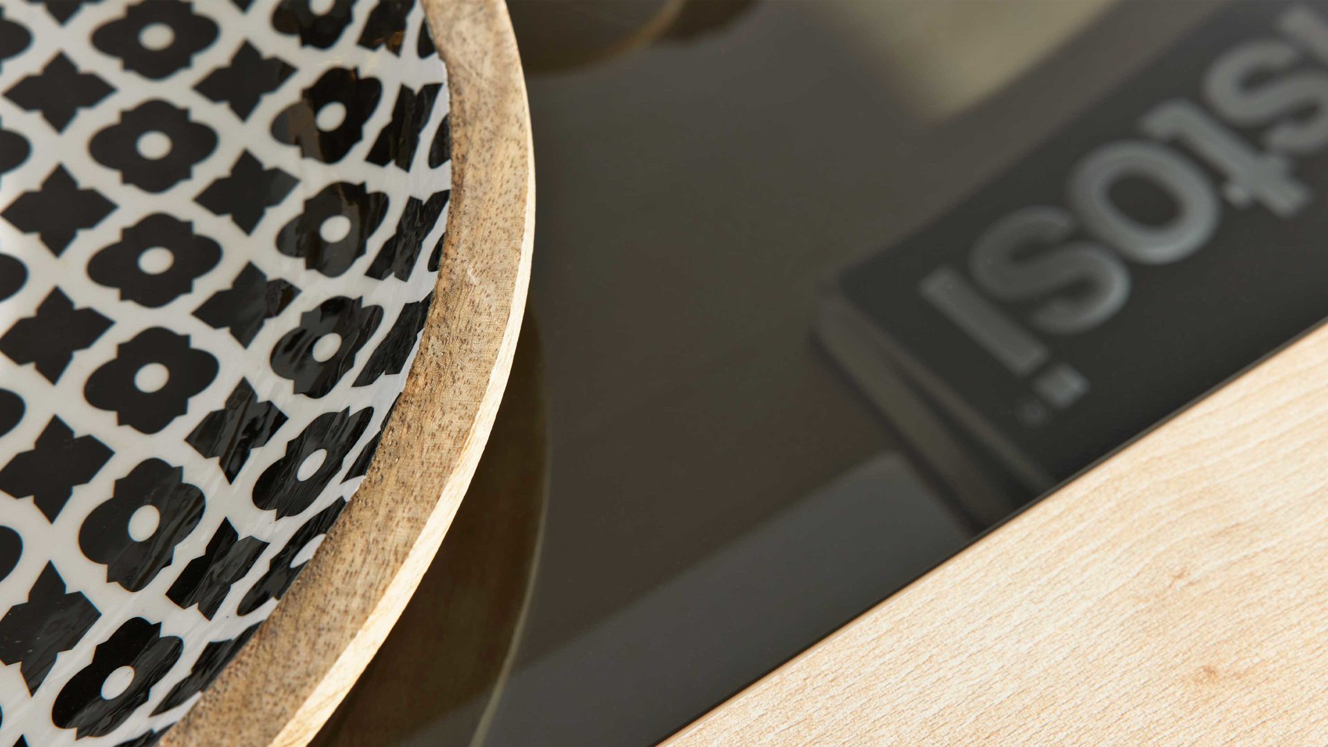 Die Einlage aus grau getöntem Glas ist nicht nur ein optisches Highlight, sondern auch besonders pflegeleicht und widerstandsfähig. Ein umlaufender ABS-Kantenschutz schützt den Tisch im Alltag zuverlässig vor Stößen – für eine langlebige, formschöne Optik. Für noch mehr Ordnung sorgt der praktische Ablageboden unter der Tischplatte. Hier finden Zeitschriften, Fernbedienungen oder persönliche Dinge dezent Platz – während die obere Fläche frei bleibt für Deko, Getränke oder kleine Genussmomente.