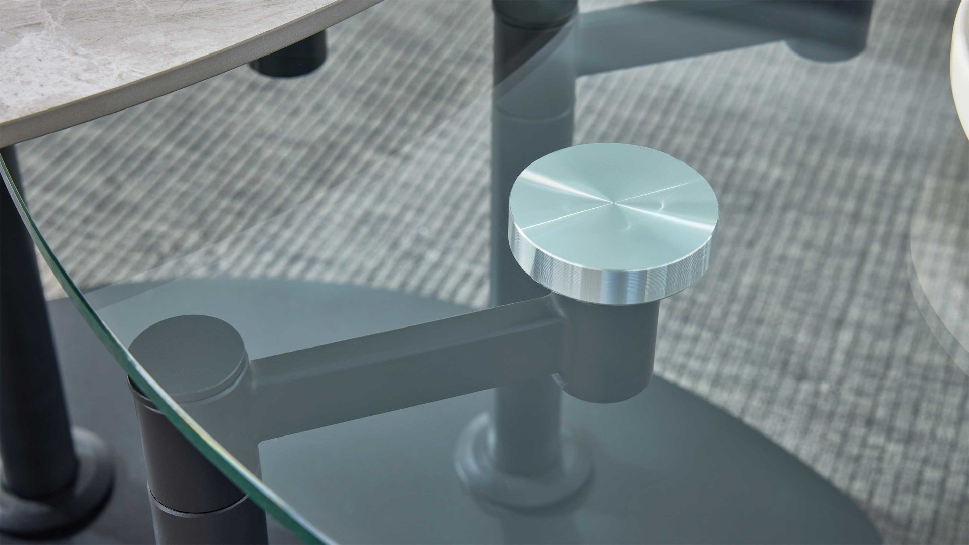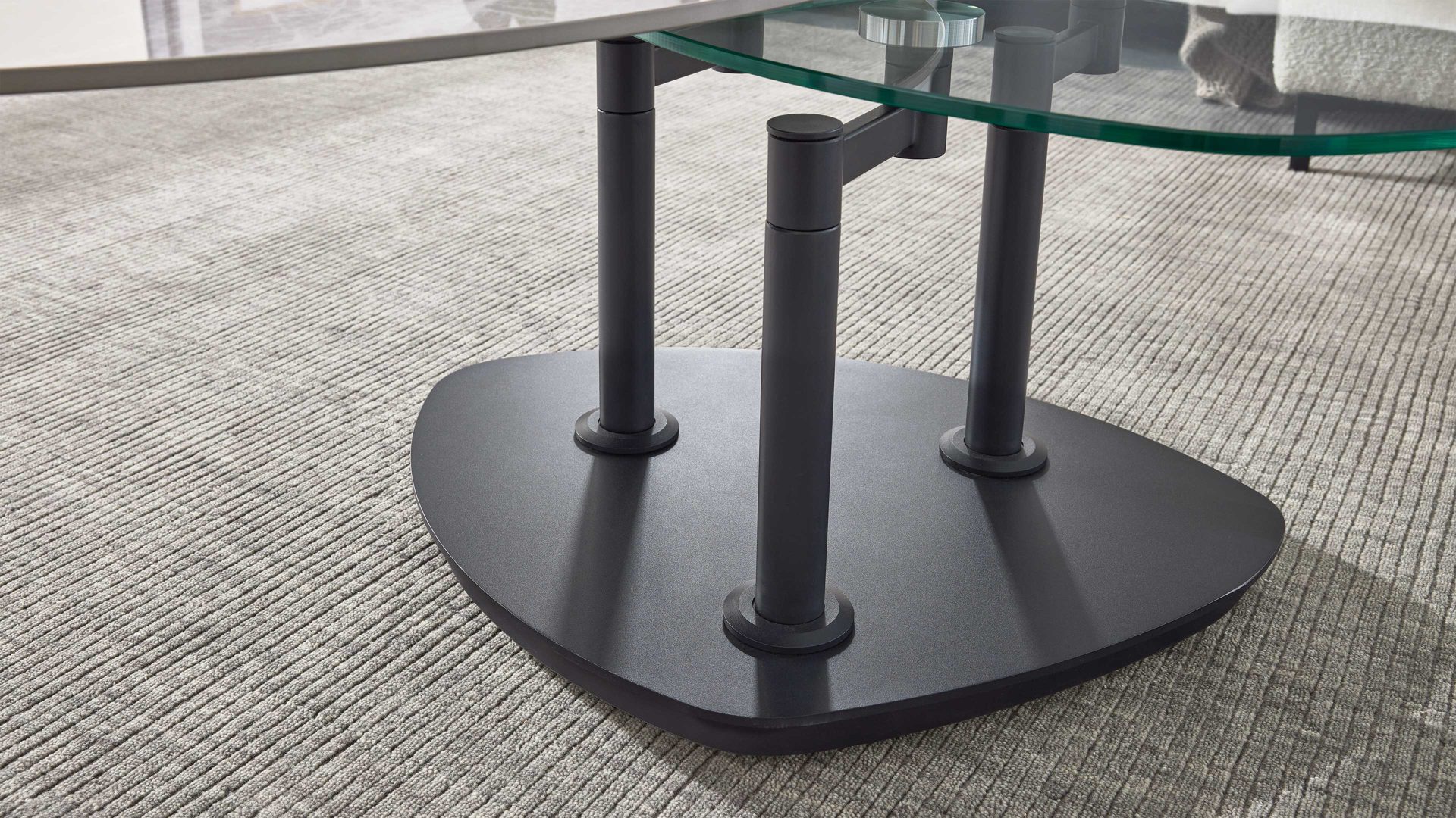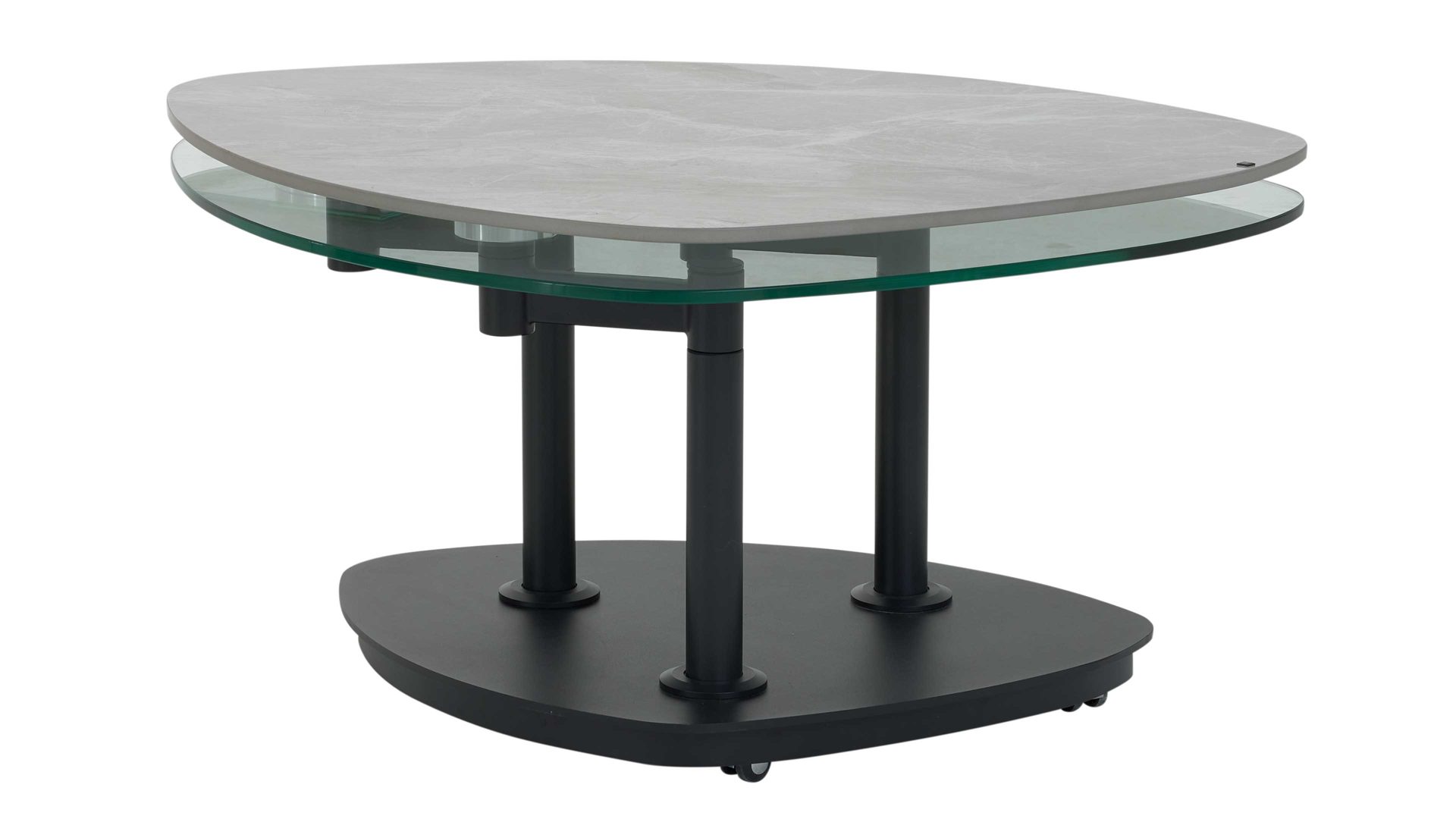 Neben der exklusiven Optik überzeugt der Tisch durch seine intelligente Funktionalität. Die 3 mm starke Keramikplatte ist auf eine 10 mm Glasplatte verklebt – eine stabile, langlebige Verbindung, die höchste Belastbarkeit garantiert. Beide Platten sind schwenkbar, sodass sich die nutzbare Fläche flexibel anpassen lässt. Je nach Ausrichtung variiert die Breite des Couchtischs von ca. 88 cm bis maximal 146 cm, bei einer Tiefe von ca. 75 cm und einer Höhe von ca. 42 cm. Damit passt sich der Tisch perfekt an unterschiedlich große Wohnlandschaften an – ob kompakt oder großzügig gestaltet.