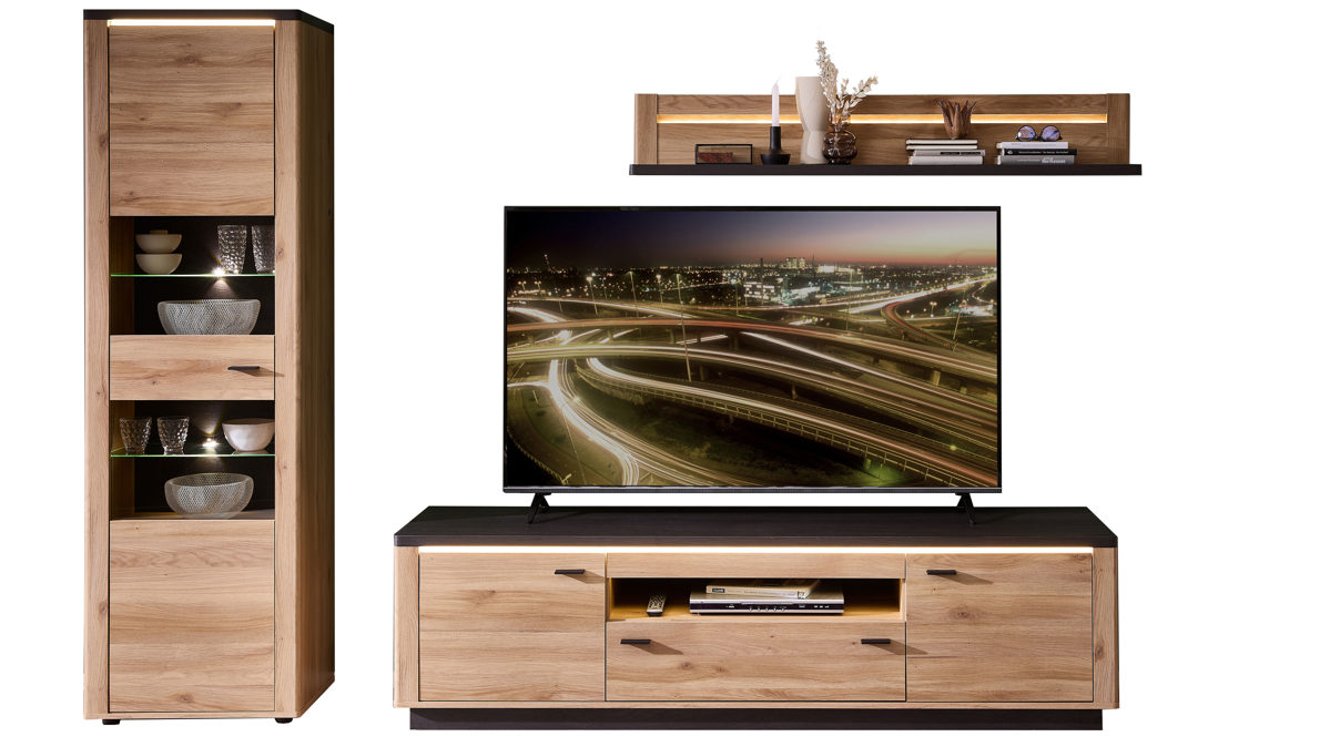 Wohnzimmer Serie Tina - Wohnwand mit Beleuchtung