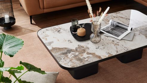 Der Couchtisch aus der Interliving Couchtisch Serie 6229 vereint edles Design mit hochwertiger Verarbeitung und langlebiger Funktionalität. Die marmorfarbene Keramikplatte Calcatta verleiht dem Tisch eine elegante, moderne Ausstrahlung, während das mattschwarz lackierte Stahlgestell einen stilvollen Kontrast setzt. So entsteht ein Sofatisch, der durch seine klare Formensprache und edle Materialkombination zum Blickfang in jedem Wohnzimmer wird.