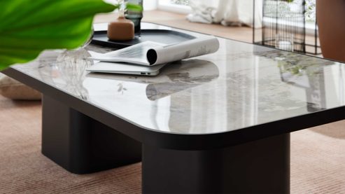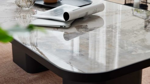Die ca. 11 mm starke Vollkeramikplatte besticht durch ihre hohe Kratz- und Stoßfestigkeit und ist zudem pflegeleicht und langlebig – ideal für den täglichen Gebrauch. Die feine Marmoroptik bringt einen Hauch von Luxus in dein Zuhause, ohne aufdringlich zu wirken, und lässt sich perfekt mit verschiedenen Wohnstilen kombinieren – ob modern, klassisch oder puristisch. Mit Maßen von ca. 140 x 33 x 80 cm (B/LxHxT) bietet der Wohnzimmertisch eine großzügige Ablagefläche und überzeugt mit klarer Eleganz und stabiler Konstruktion.
