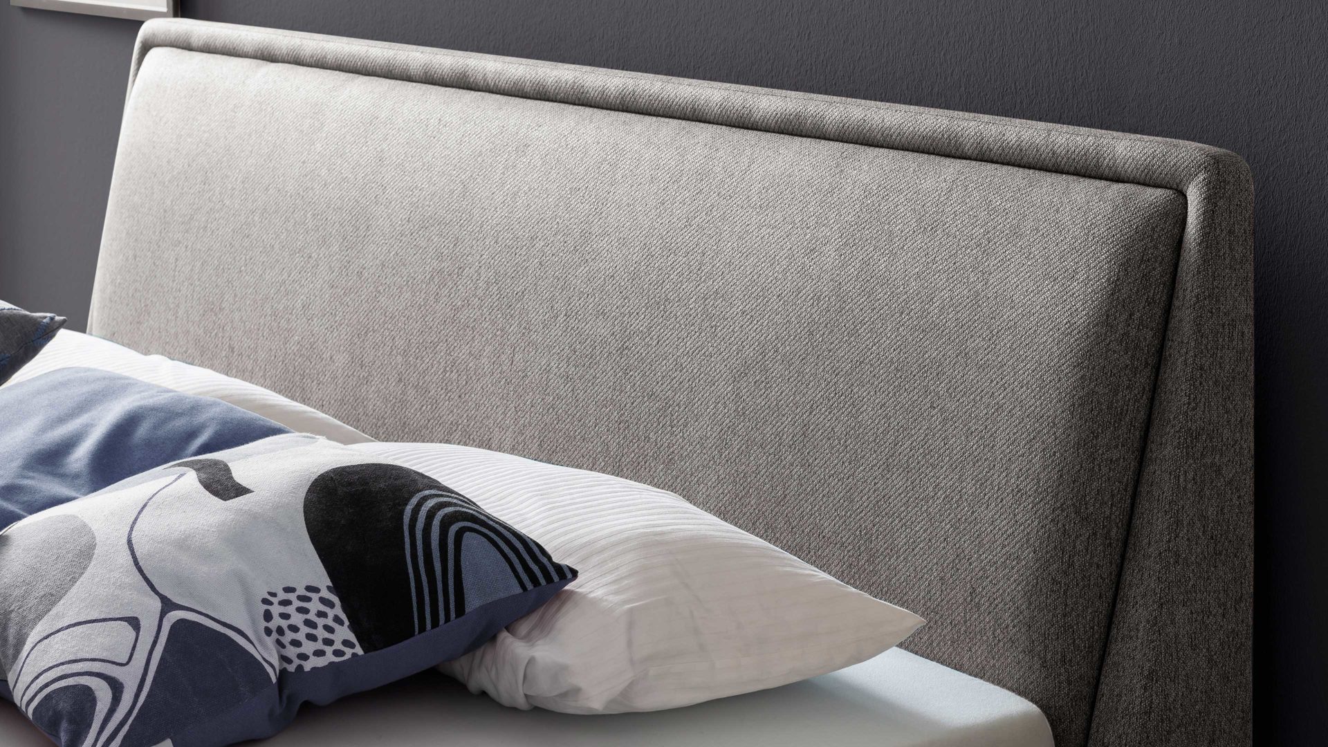 Das Polsterbettgestell Frieda mit Bettkasten verkörpert modernen Komfort. Mit dem grauen Stoffbezug und den schwarzen Holzfüßen präsentiert es sich elegant und gemütlich designt. Die Bettseiten sind genauso wie das Polsterkopfteil glatt bezogen. Letzteres ist eine angenehm weiche Rückenlehne, wenn Sie abends im Bett vor dem Schlafen noch entspannt in Ihrem Buch lesen oder fernsehen möchten.