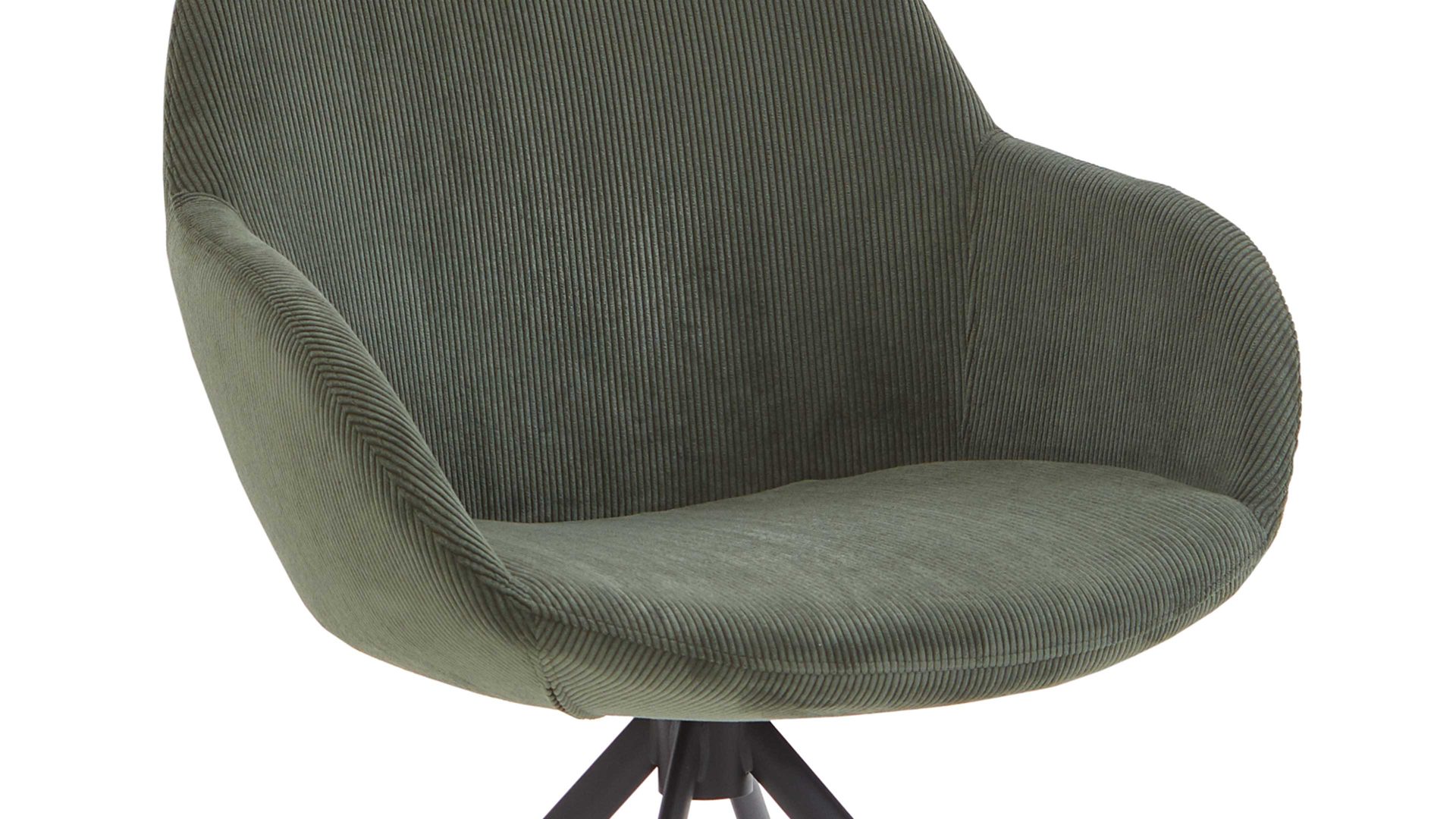 Der hochwertige NIEHOFF Armlehnstuhl Dacapo verkörpert moderne Eleganz und Gemütlichkeit. Mit dem mattschwarz lackierten Stativgestell aus robustem Eisen sowie dem trendigen grünen Cordbezug überzeugt er sowohl optisch als auch qualitativ. Dank der Ergo-Schale mit Formschaum bietet der Designerstuhl für das Esszimmer extra hohen Sitzkomfort.