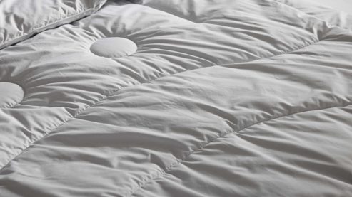 Der Bezug aus feinstem Edel-Batist Nm 100 mit soft finish (Deutsches Gewebe) besteht aus 100 % Baumwolle und fühlt sich besonders glatt und angenehm auf der Haut an. Dank der feinen Steppung passt sich die Decke perfekt deiner Körperform an und umhüllt dich mit wohliger Leichtigkeit.