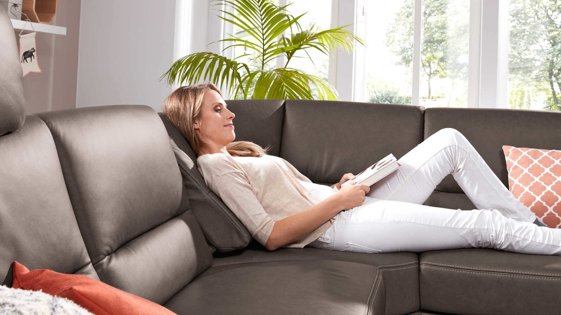 Indem Sie mit Ihrer Hand kurz unter das Rückenpolster greifen und die Rückenlehne zuerst leicht nach oben und im Anschluss nach vorne ziehen, verändert sich der Neigungswinkel der Lehne, sodass Sie sich beim Lesen, Fernsehen oder reinen Entspannen auf der Couch in eine besonders bequeme Position begeben können. Auf diese Weise verschafft die manuelle Relaxfunktion Ihrem Körper und Geist eine Extraportion Erholung.