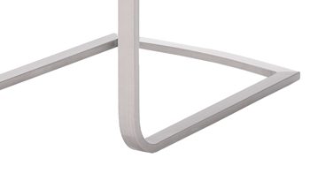 Das komfortable Sitzmöbel in Braun besticht im zeitlosen sowie geradlinigen Design und ist die perfekte Sitzgelegenheit für Ihren einladenden Essbereich. Sowohl in der Küche als auch im Esszimmer sitzen Sie und Ihre Gäste äußerst bequem auf dem Freischwinger, der mit pflegeleichtem, braunem Kunstleder und einem stabilen, gebürsteten Flachrohrgestell aus Edelstahl ein Schwingstuhl für die ganze Familie ist. Dank der praktischen Griffmulde in der Rückenlehne versetzen Sie den Polsterstuhl einfach dorthin, wo Sie ihn benötigen.