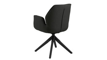 Dabei harmoniert der Armlehnstuhl in seiner sanften Formensprache mit zahlreichen Einrichtungsstilen: Dafür sorgt der dunkelgraue Stoffbezug Town 33, der die gesamte Sitzschale inklusive der bequemen Armlehnen weich umhüllt. Die schwarz lackierten Holzfüße fließen stimmig in das Gesamtbild ein. Ob als Esszimmerstuhl oder für erholsame Momente im Lounge-Bereich und Wohnzimmer: Das Modell Aura ist der perfekte Allrounder.