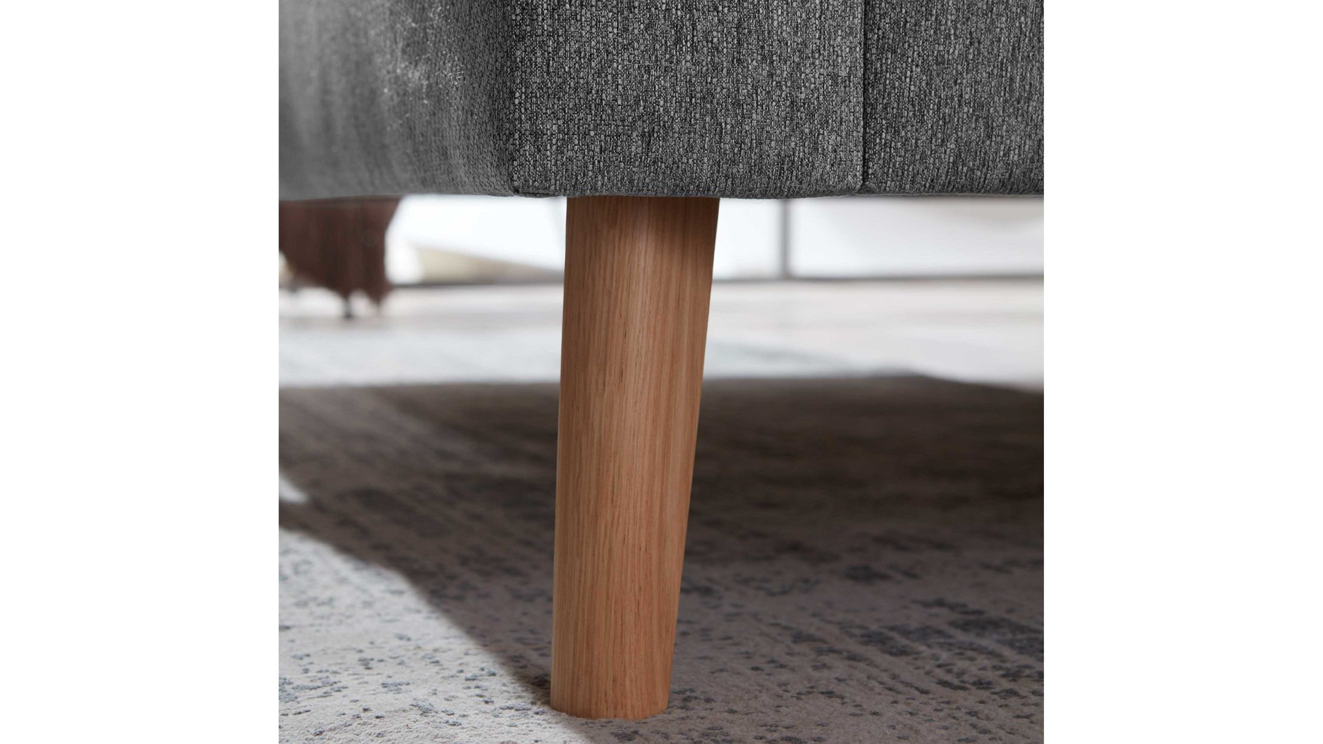 Das Polsterbettgestell Jazz ist gemütlich und stilvoll designt. Mit dem edlen grauen Stoffbezug und den eichefarbenen Holzfüßen strahlt es Eleganz mit einer Prise Natürlichkeit aus. Zu den Höhepunkten gehört das gesteppte Polsterkopfteil. Es verleiht dem Bett das gewisse optische Etwas und gibt Ihnen beim Lesen oder Fernsehen eine bequeme Anlehnmöglichkeit. Die Bettseiten sind glatt bezogen.